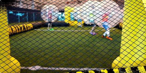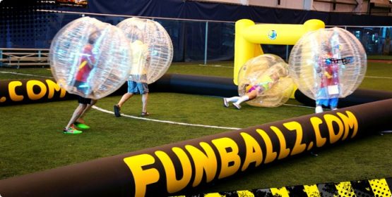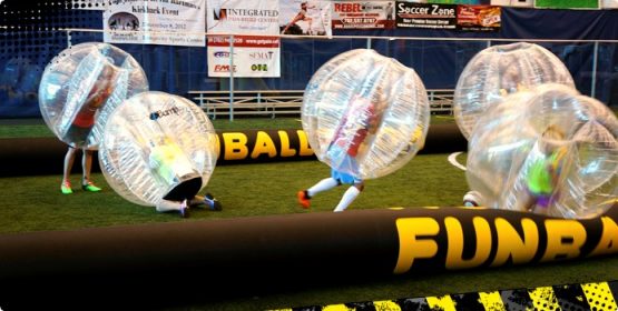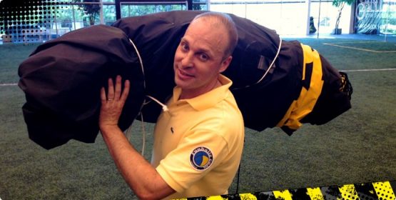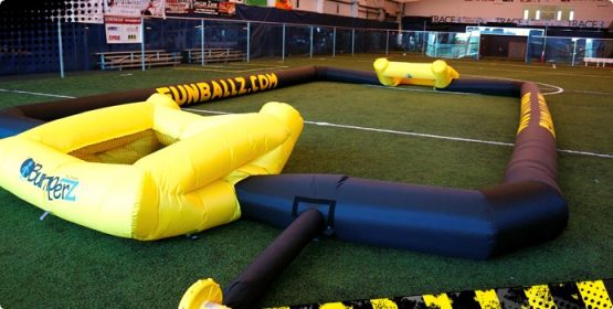 I begge ender af arenaen er der mål med tilhørende net. Alt er sammensat og oppustes på én gang, når luften tilføres. Luften kommer fra en separat medfølgende pumpe. Pumpen kræver konstant strømtilførsel.